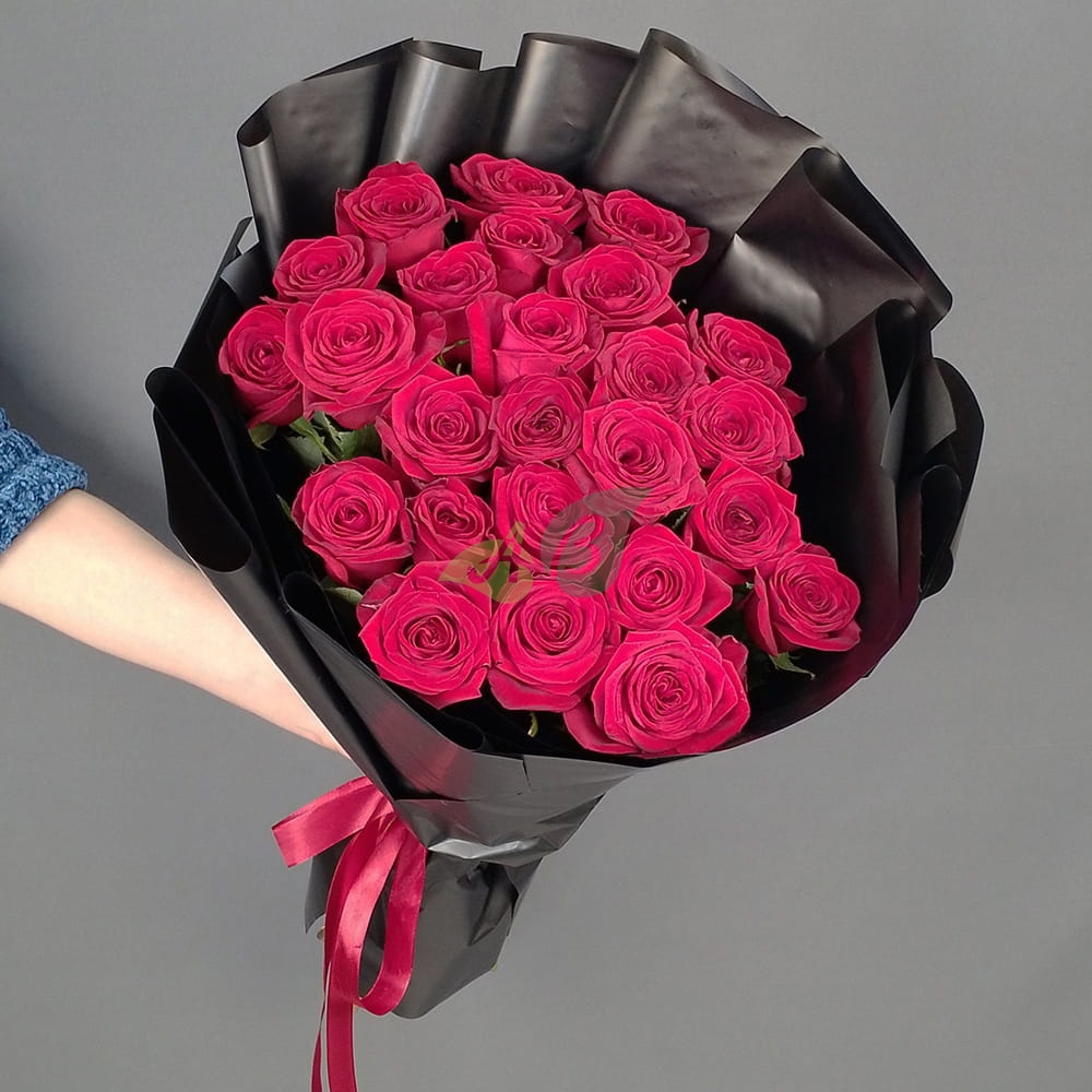 Красные розы в букете издавна считались символом любви. Роскошная чёрная упаковка подчёркивает изысканность и великолепие каждой розы. Ни одно сердце не сможет устоять против такого шикарного букета из роз!