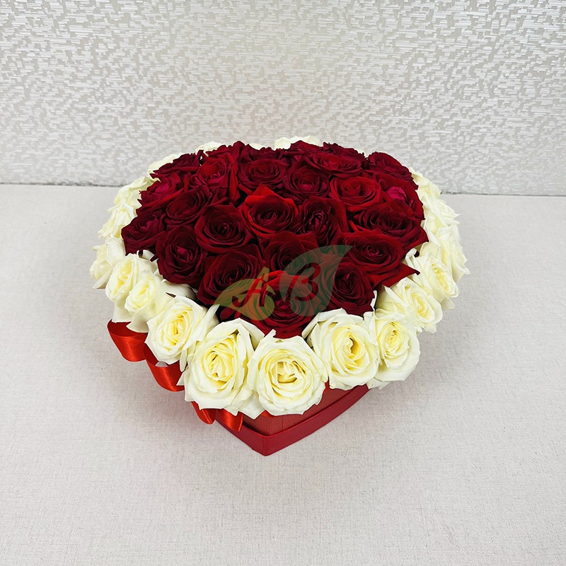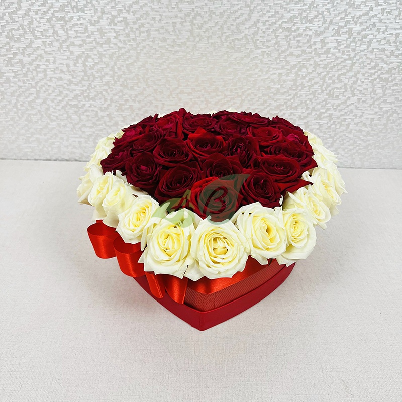 Если дарить цветы в коробке на праздник, то, несомненно, заказывать розы. Доставка этой шикарной композиции из красных и белых роз будет бесплатной по Светлому.